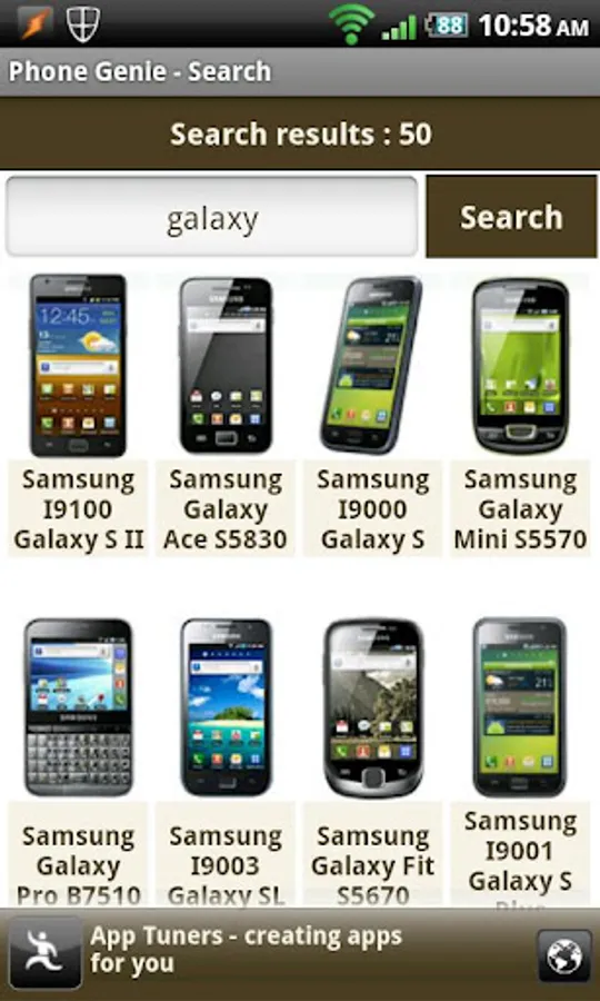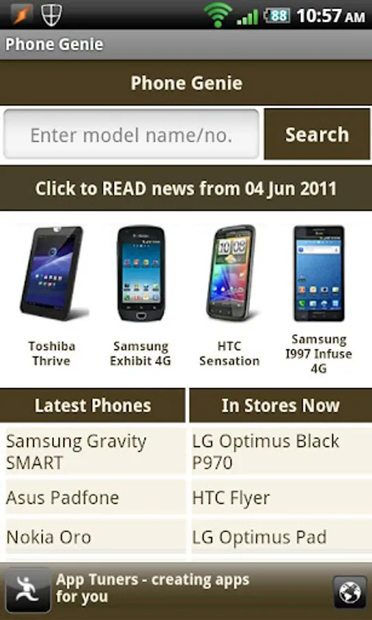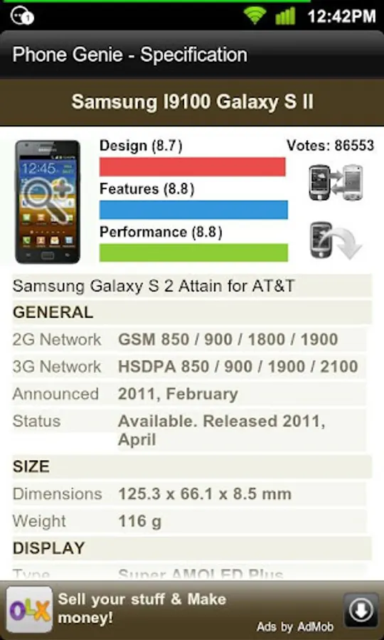 Phone Genie brings you the biggest database of mobile phones that have been available in over the last 15 years. It unleashes the power of GSMArena.com on to your cell phones and tablets, with a user interface that will adapt to whichever screen size your device has.
