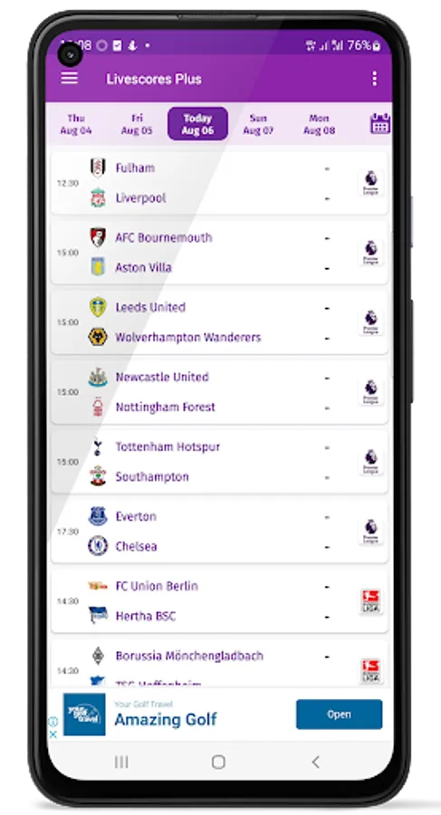 The best live score app for the most followed leagues in Europe: English Premier League, UEFA Champions League, UEFA Europa League, UEFA Conference League, UEFA Super Cup, Spanish LaLiga, Italian Serie A, French Ligue 1, German Bundesliga, English FA Cup, English Carabao Cup, Spanish Copa Del Rey, English Community Shield, Spanish Super Cup, Coupe de France, French Super Cup, German DFB Pokal, German Super Cup, Coppa Italia, Italian Super Cup.