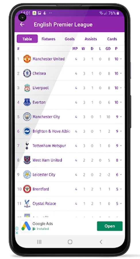 * Select your favorite teams and get notifications whenever they score or receive red/yellow cards, and VAR disallowed goals.