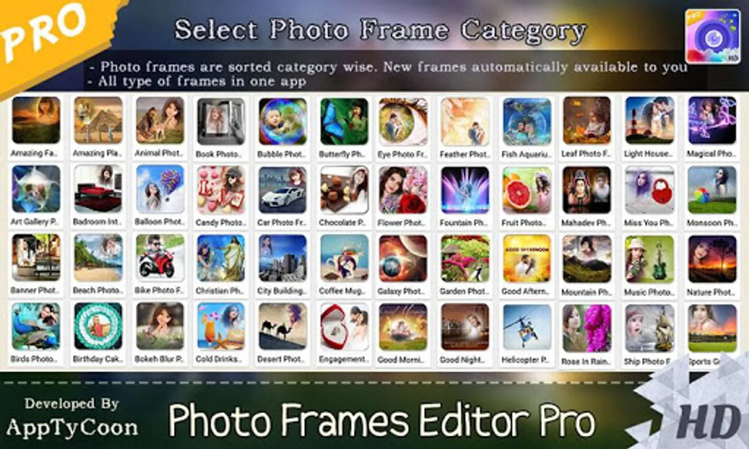 - Photo Frames Editor Pro have large collection of photo frame available inside the app