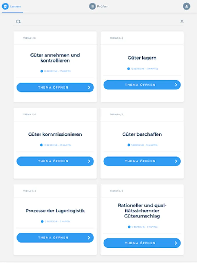 The “warehouse logistics (specialist)” learning app is an internet-independent app that can be used anywhere and anytime on your device after downloading. Registration is required as you can use the app on your smartphone, tablet and PC. Your personal statistics can be called up in your account at any time.