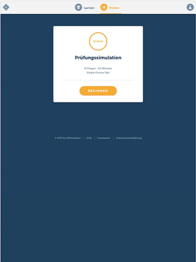 With the help of the realistic exam simulation you have the opportunity to test the knowledge you have previously acquired in the learning area. The framework conditions correspond to the general requirements of the Chamber of Industry and Commerce with regard to the time specifications, answer options, number of questions, etc. After a test run, a pass or fail is immediately shown in the statistics. In addition, a detailed evaluation can be carried out in which each individual question can be traced for "correctness".