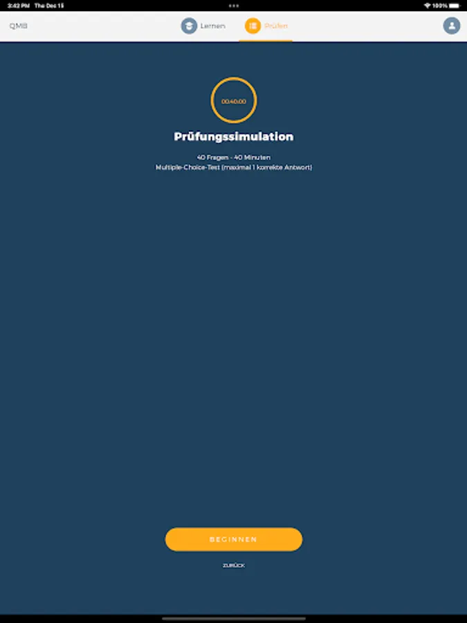 The "QMB" learning app is an internet-independent app that can be used anytime and anywhere on your device after downloading it. Registration is required as you can use the app on your smartphone, tablet and PC. Your personal statistics can be called up in your account at any time.