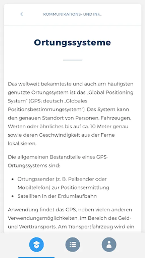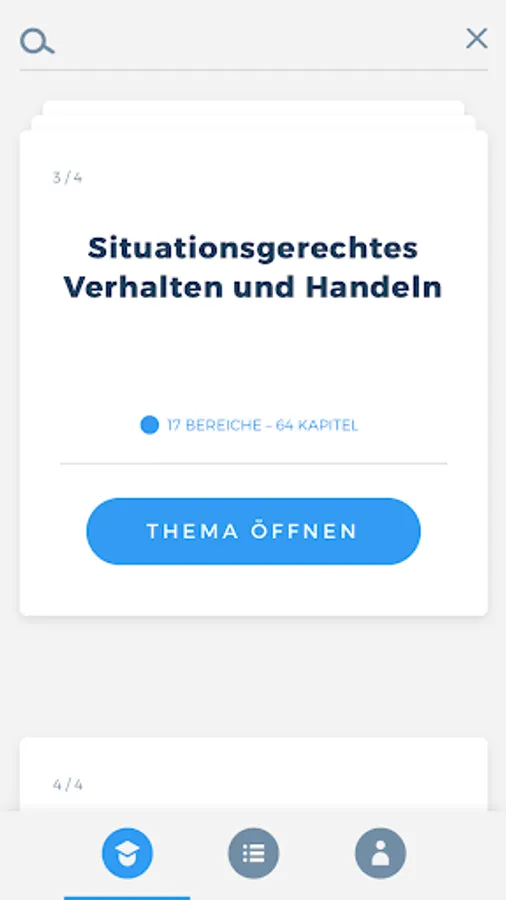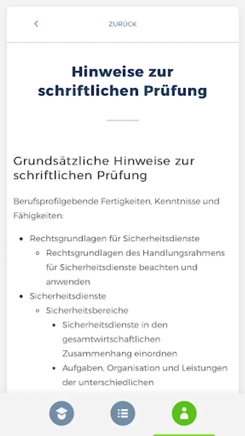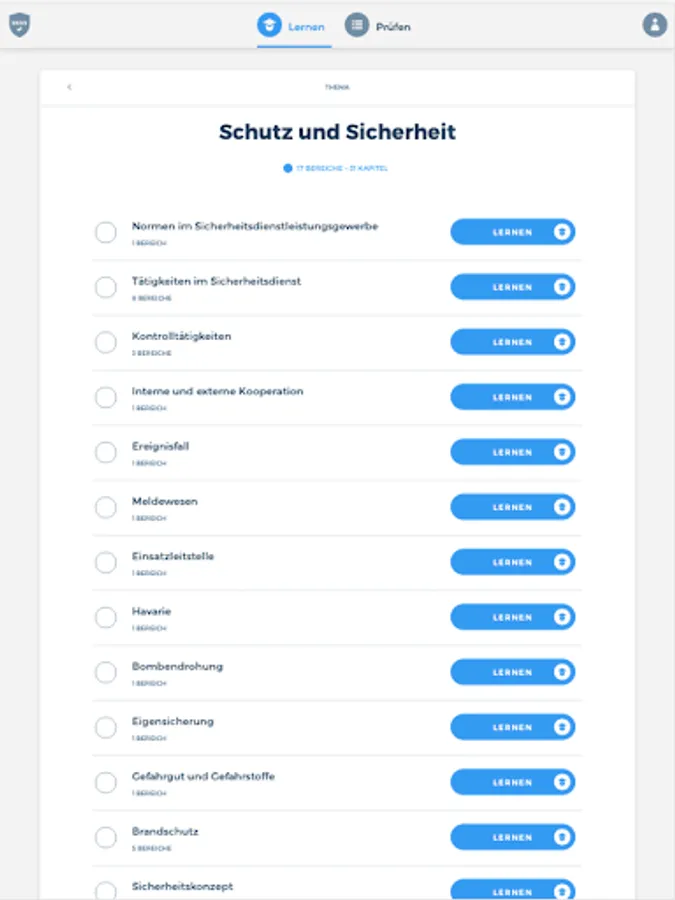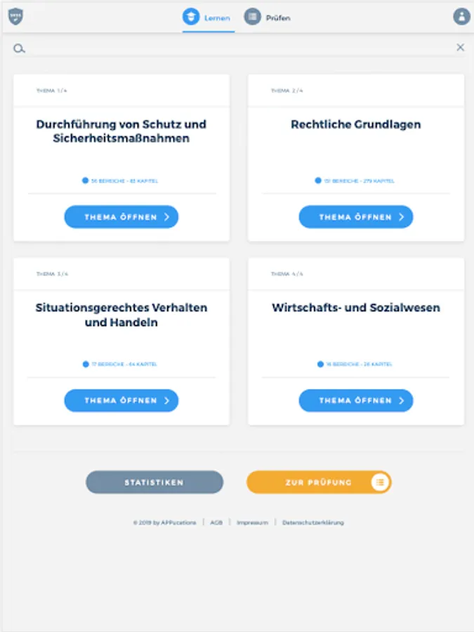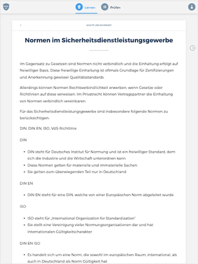The “SKSS” app prepares you comprehensively for your upcoming theoretical exam to become a service worker for protection and security at the Chamber of Industry and Commerce. The combination of a learning and a testing area thus serves as ideal learning support. In addition, you are always able to view your current learning progress in order to be able to draw conclusions about any knowledge gaps.