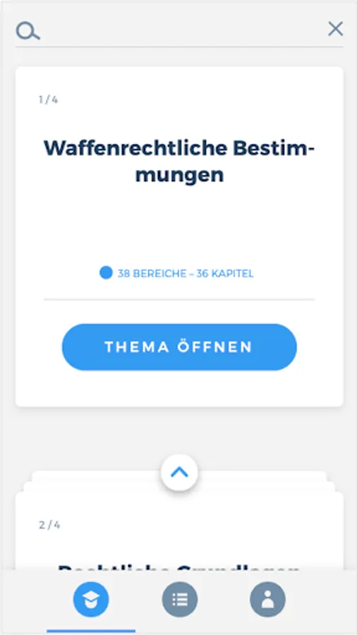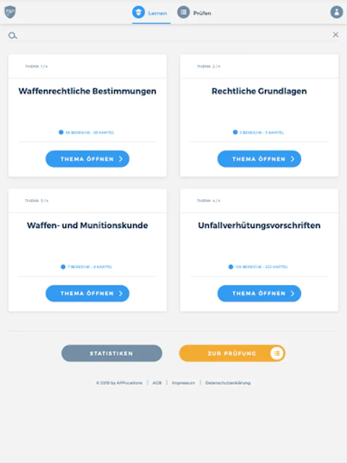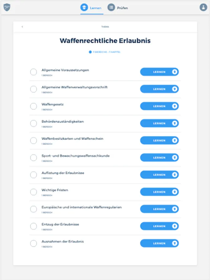 The app "Weapons Expertise Sports Shooter" prepares you comprehensively for your upcoming theoretical weapon expertise examination for sports shooters. The combination of a learning and a testing area thus serves as ideal learning support. In addition, you are always able to view your current learning progress in order to be able to draw conclusions about any knowledge gaps.