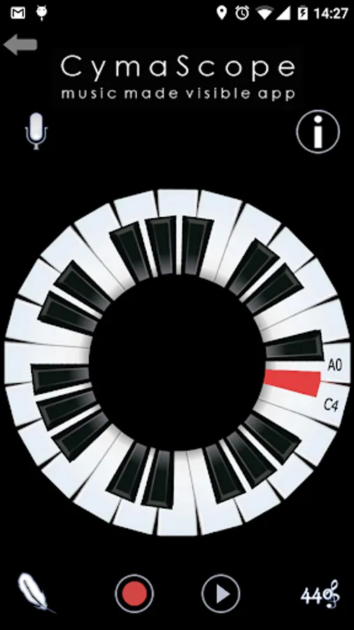 • Select your favorite concert pitch: 432 Hertz, 440 Hertz or 444 Hertz, and see unique, dynamic imagery from each.