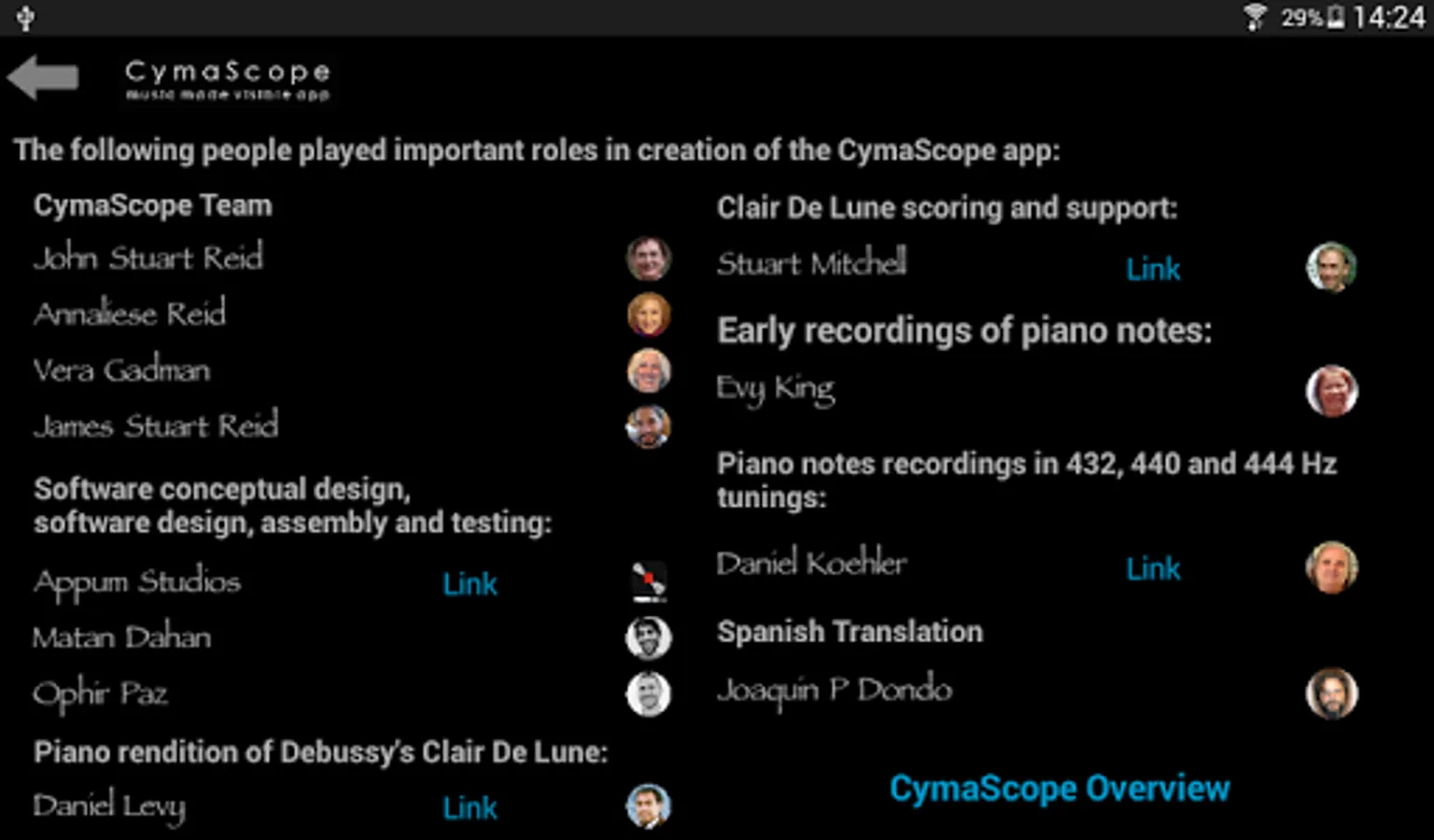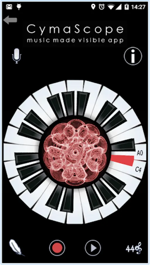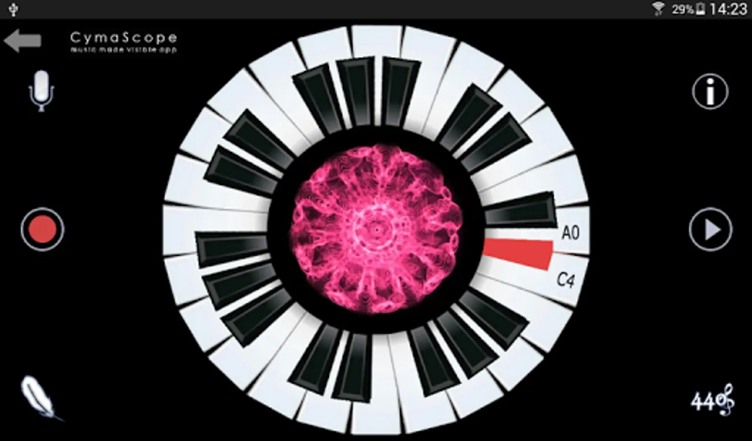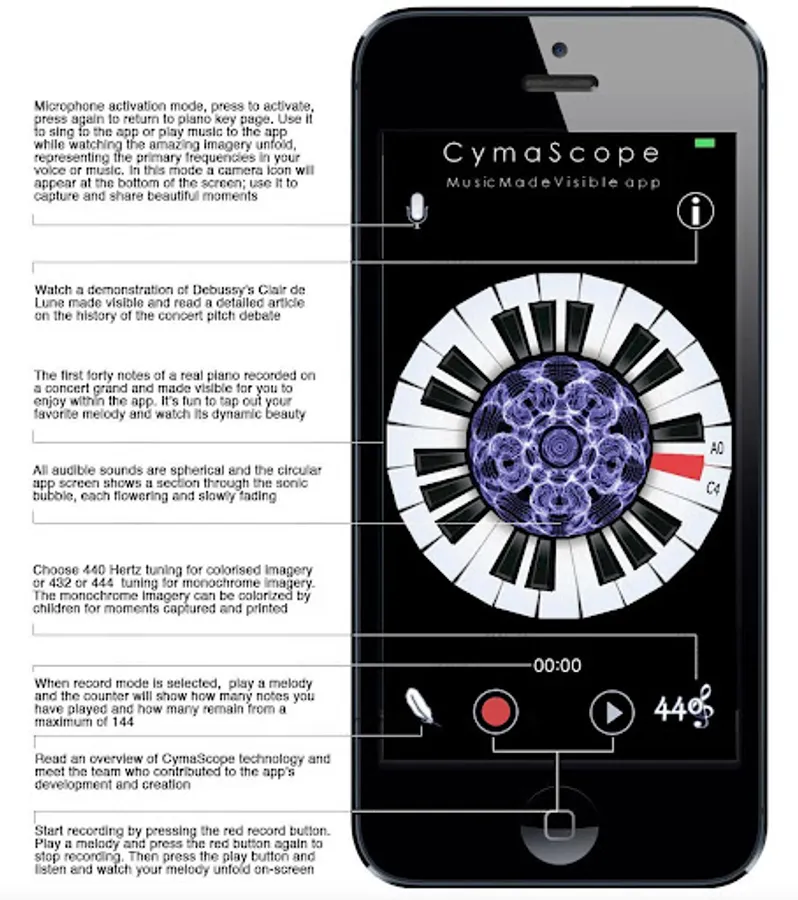 The CymaScope app is the world’s first app to make the geometry of piano sounds and music visible. The imagery you will see is not a computer simulation; all the beautiful imagery in the app was created on a physical CymaScope then stored in digital memory for you to enjoy.