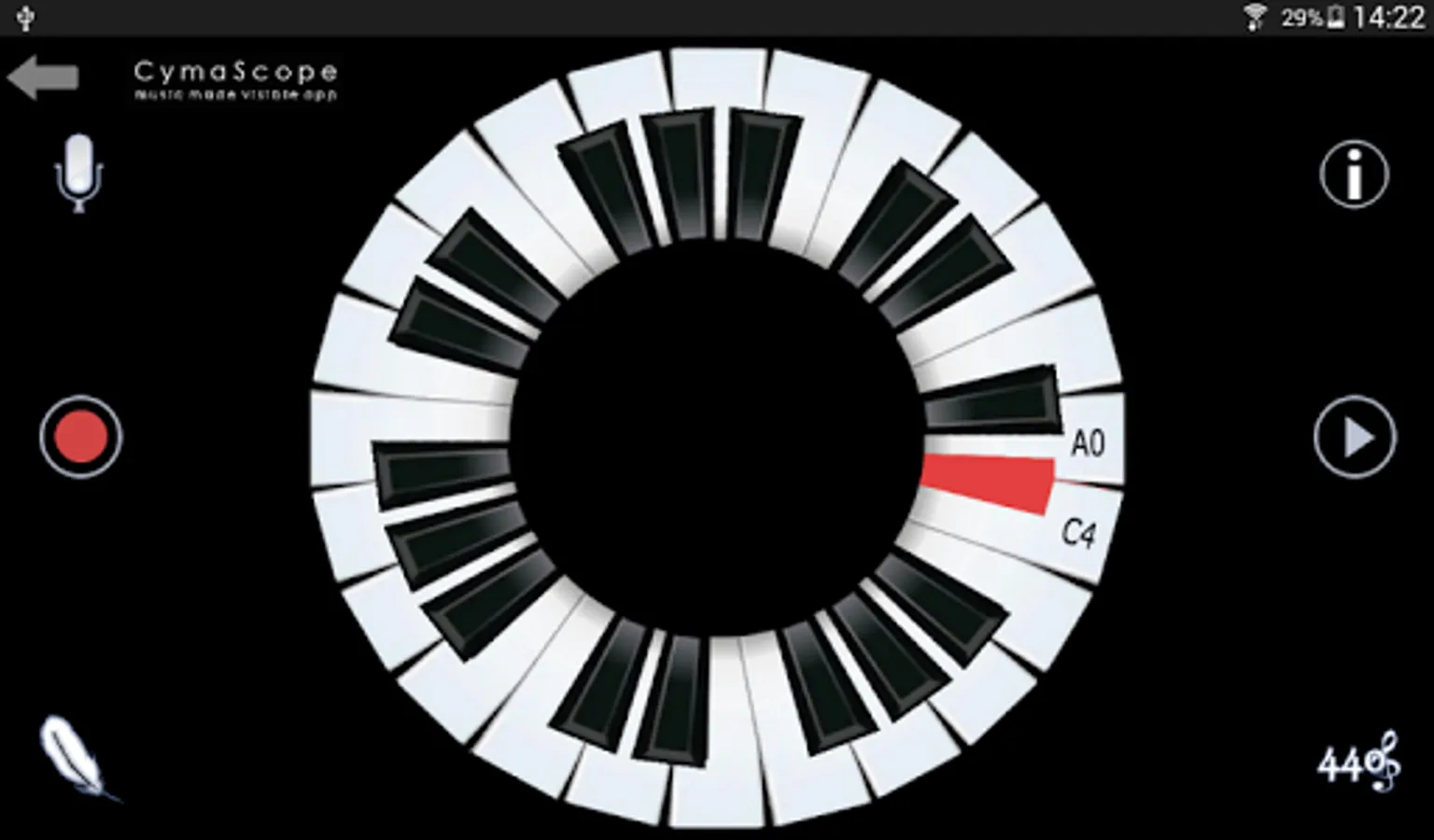 • Play the visible piano notes by the touch-sensitive circular keyboard. (Scroll for more info...)