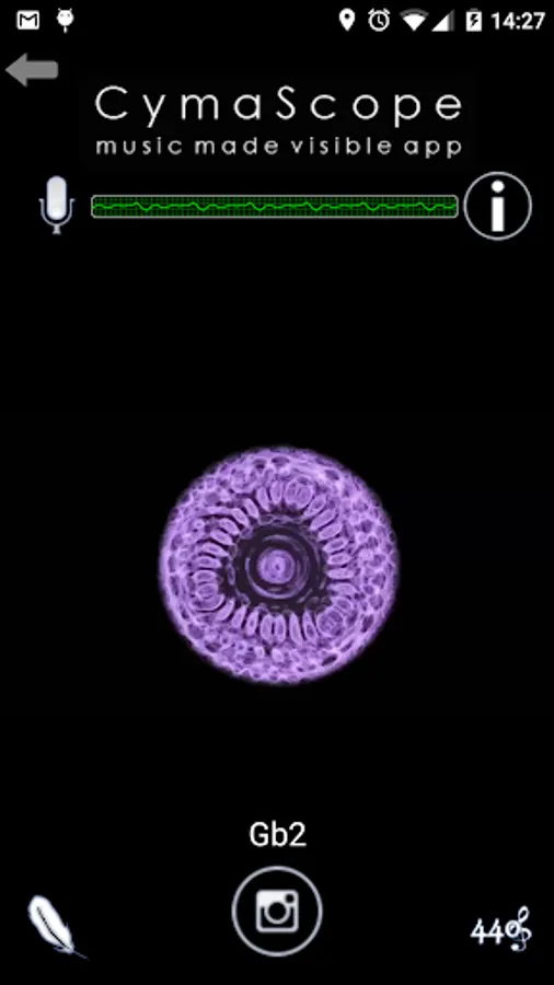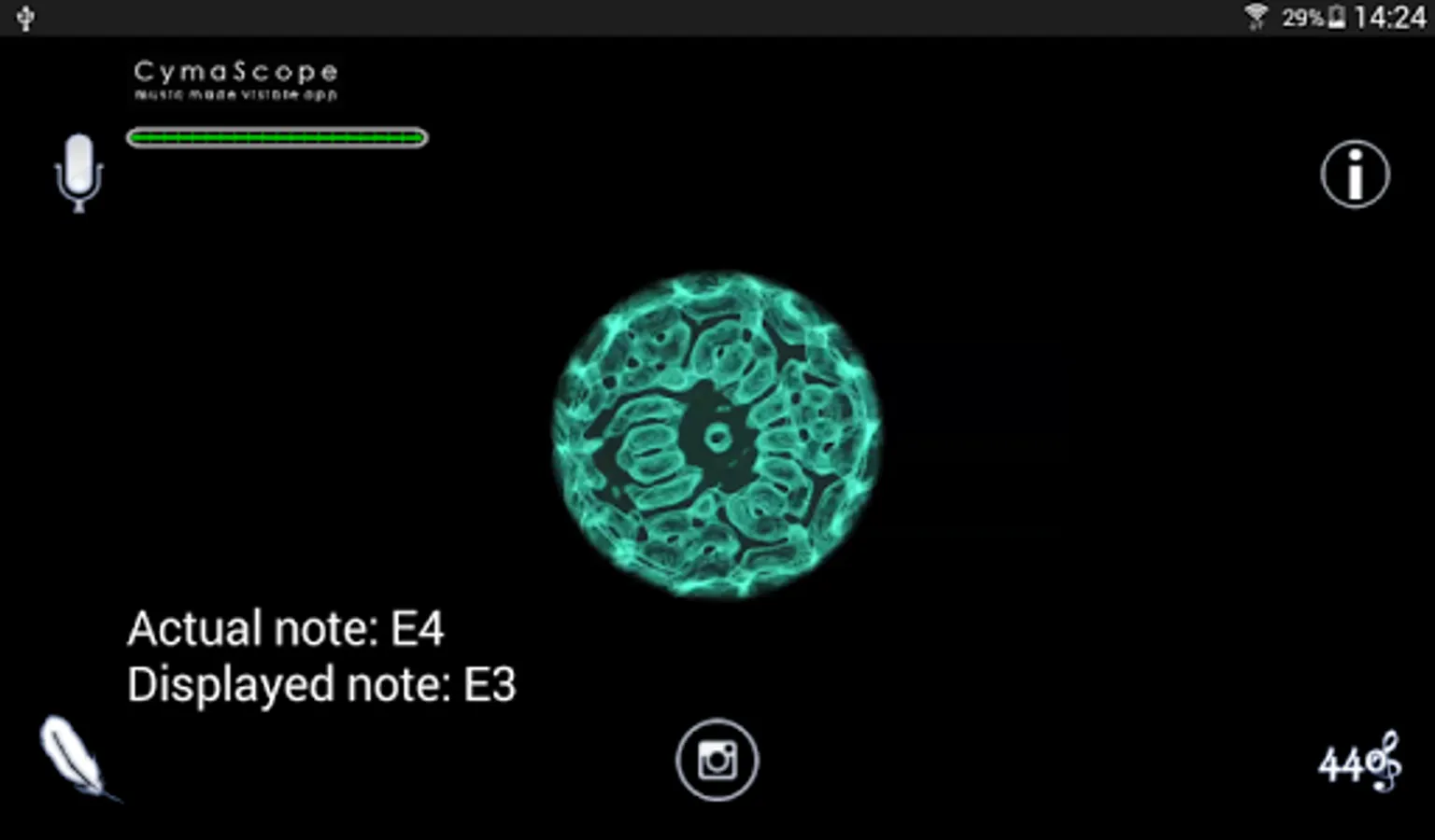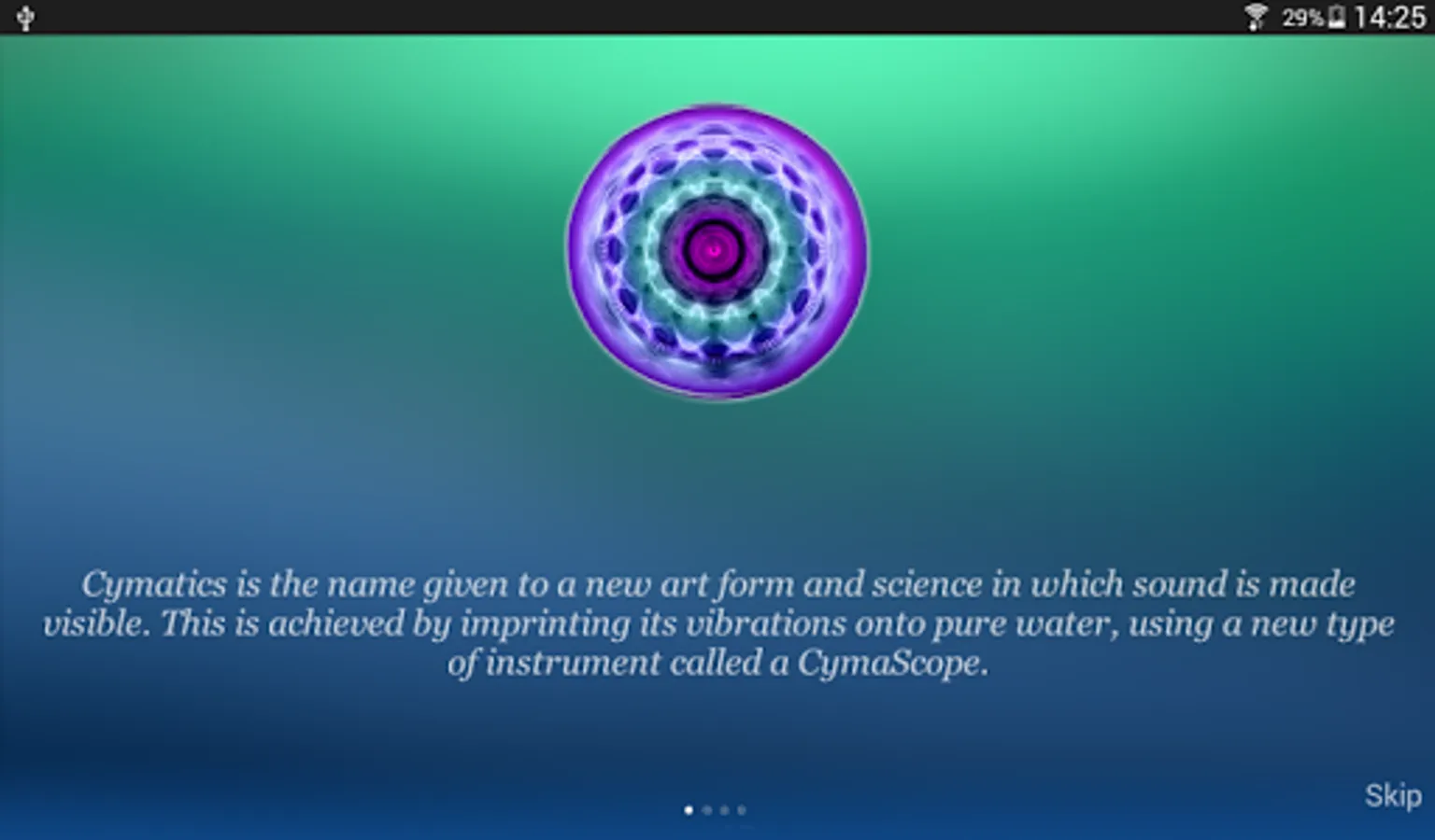 • Play a live musical instrument or any recorded music to the app and watch the CymaScope imagery unfold in real time.