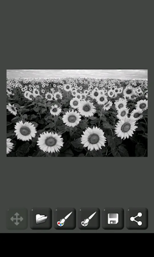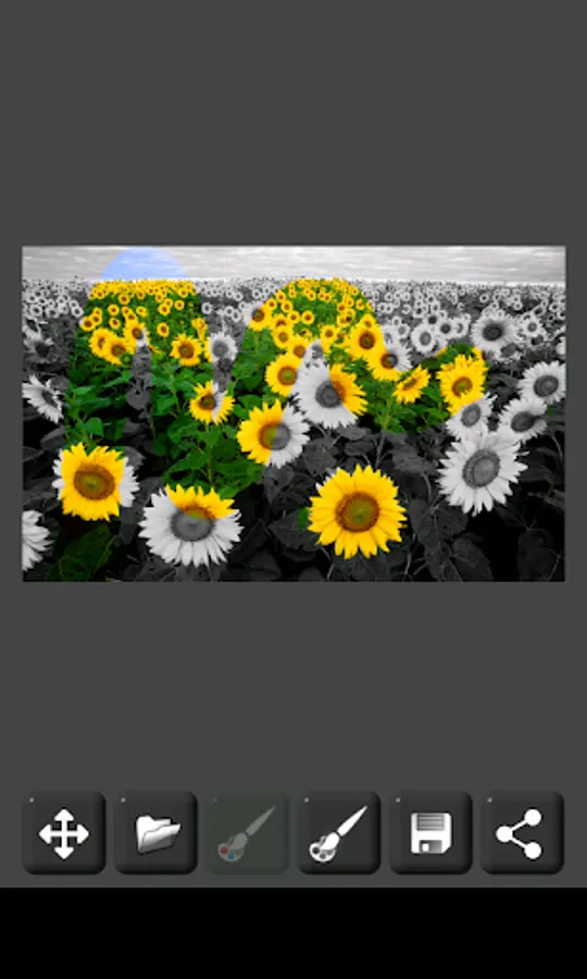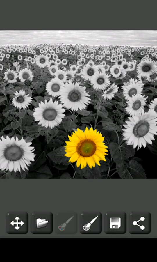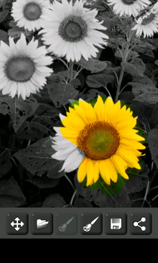 The original image (which must be in color) is first converted to grayscale (black and white image), then you can color the desired areas using your finger.