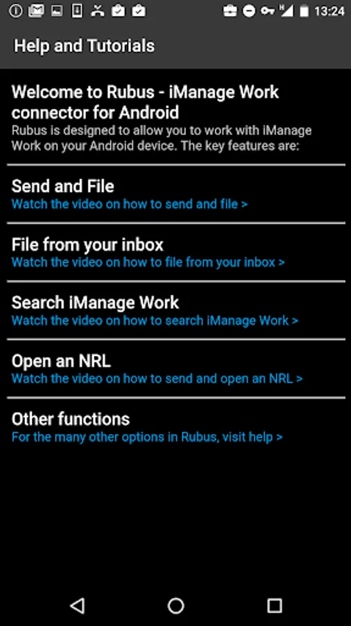 Rubus is an iManage Work client for your Android smartphone. Rubus is integrated with the Nine Work email client to provide features including: