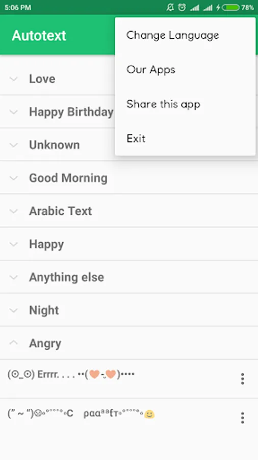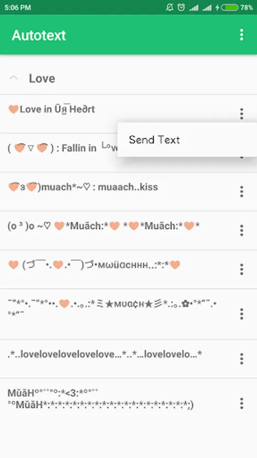 AutoText is an application that contains a collection of Autotext. This app is very easy to use, just simply touch on list that you want, then it will be automatically copied to the clipboard.
