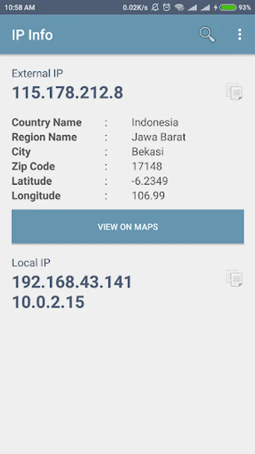 Simple and easy-to-use geolocation app that displays the location of an IP address on a map, together with additional useful data such as: