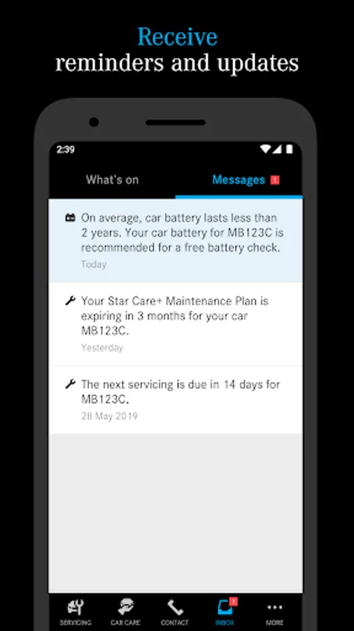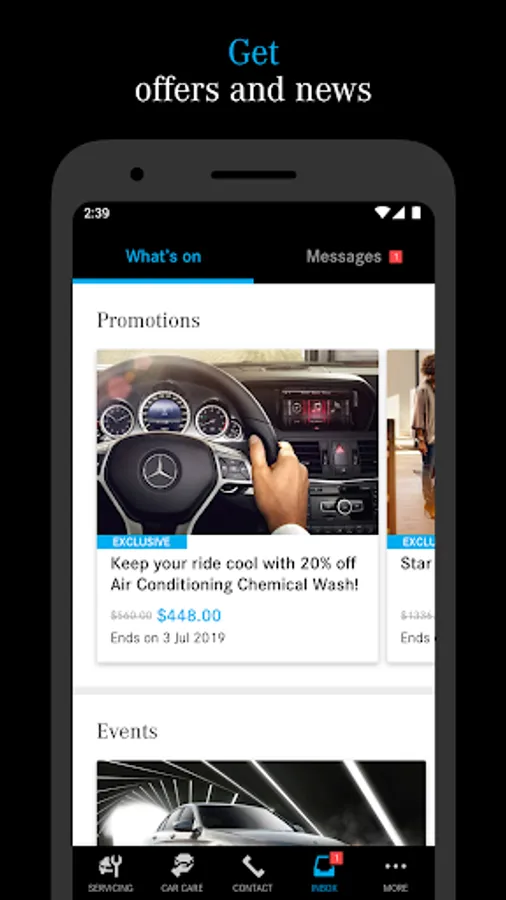 • Enjoy priority on exclusive promotions for Aftersales services & packages and MercedesBoutique merchandise (in-app purchase available)