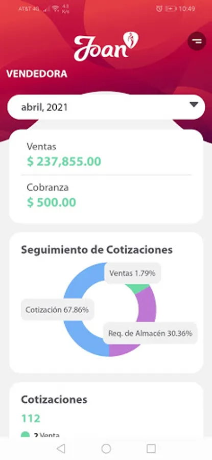 Joan always seeks innovation and to be a leader in the field of sales, she makes available to her sellers the mobile application that allows real-time quotes, payments and returns.