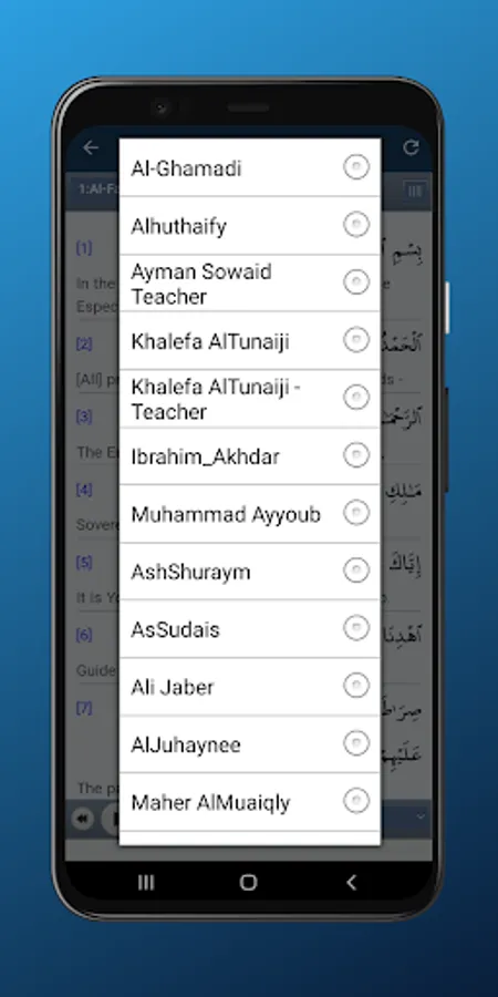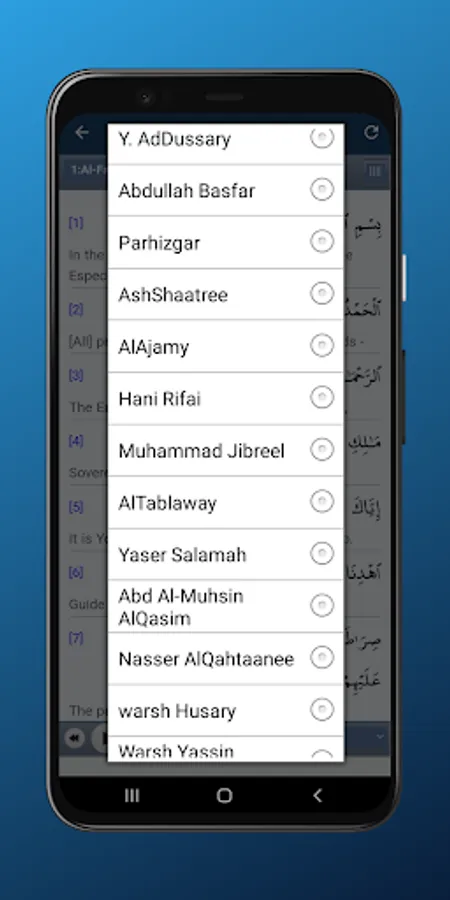 Holy Quran Recitation is an application that helps you to read or listen the Quran easily and conveniently. The Holy Quran recited at your choice by famous reciters such as: Mishary Rashed Alafasy (Mishary Al Afasy), Mahmoud Khalil Al-Hussary, Shiekh Hesham Elgamal, Muhammad Siddiq Al Minshawi, Abdul Basit Muhammad Abdus Samad, Mustafa Ismail, Mahmoud Ali Al Banna, Saad al Ghamdi, Ali Alhuthaifi, Majeed Ayman Suwayd, Khalifa Al Tunaiji, Ibrahim Al Akhdar, Muhammad Ayyub, Saud Al-Shuraim, Abderrahman Soudais (Abdul Rahman Al-Sudais), Ali Saleh Mohammed Ali Jaber, Maher Al-Mu'aiqly, Abdullah Basfar, Ahmed Al Ajmi, Hani ar-Rifai, Muhammad Jibreel, Mohamed Tablawi (al Tablawi), Yasser Salamah, Abdul Muhsin Al Qasim, Nasser Al Qatami, Yassin Al-Jazaery, Ibrahim Al-Dossari and others. Also in more language such as: english, french, bosnian, urdu shamshad and farhat, persian kabiri or heyayatfar, azerbaijani.
