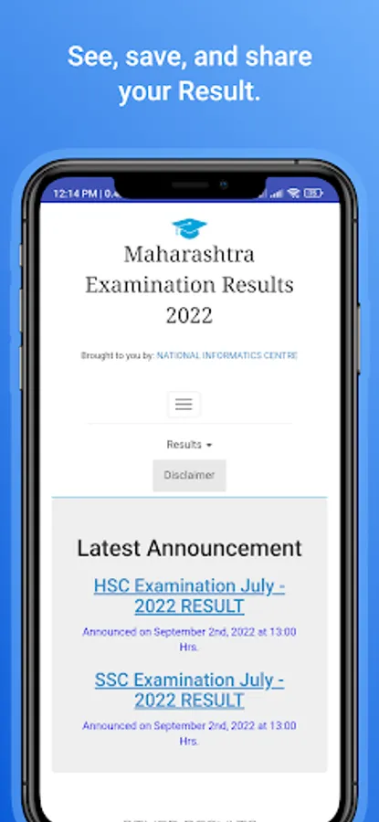 Disclaimer note: MahaResult app is not an official app of Maharashtra Board Result. It contains only the web view system, in which we display the website into the app. So, if you face any errors regarding Maharashtra Results, please contact your respective ones or website owners.