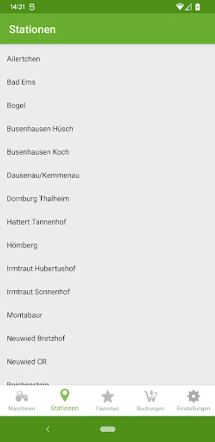 - Stations in the area of the machine ring with a list of the machines available there