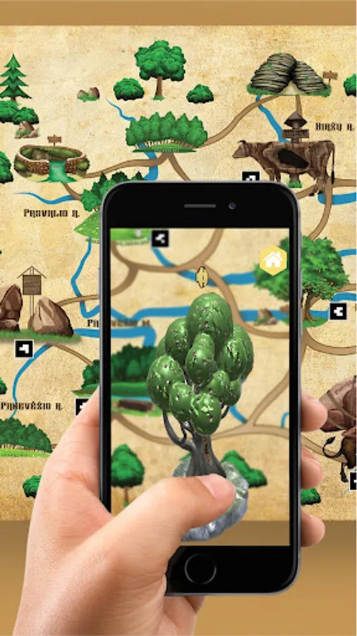 Bite applications designed to meet the myths and legends and personalities areas. Each of the objects can be viewed as a cartoon (with sound), you just have nukrepti smart device camera to one of the fourteen markers (keys) are located on the map. A review of the cartoon are three statements from which to choose the right player gets one Koriukas bees. The game is won collect all Koriukas.