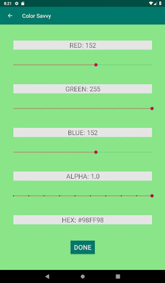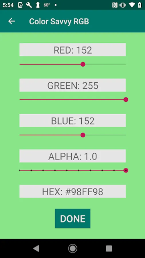 - Create custom colors using the RGB sliders