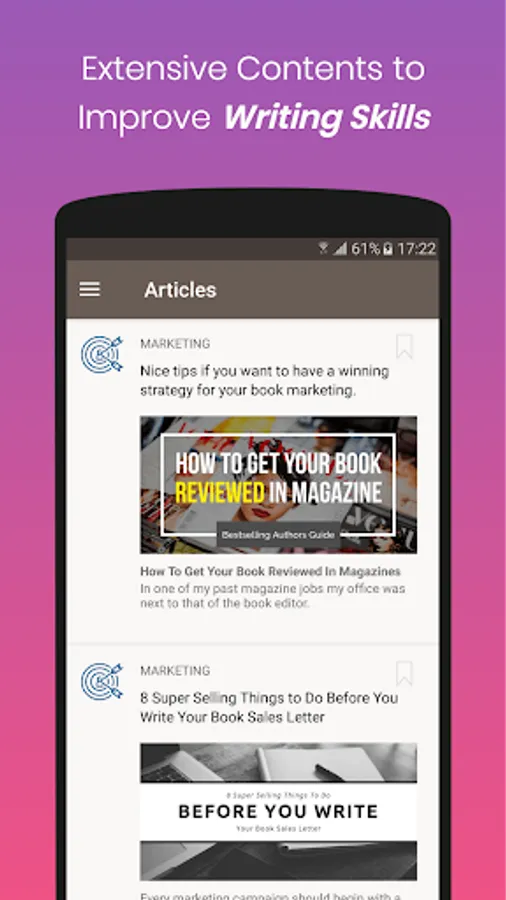 Our app contains a wealth of curated articles and resources from various expert sources, covering a wide range of topics to help you master the craft of writing. From grammar and syntax to plot development and character building, we've got you covered. Our team of experienced editors scours the web to find the best resources and presents them to you in a user-friendly format, making it easy to access the information you need when you need it.