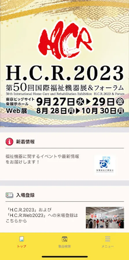 The "HCR App" is an app for visitors to the "International Welfare Equipment Exhibition", the largest welfare equipment and supplies exhibition in Asia, and for those who are interested in welfare equipment and supplies.