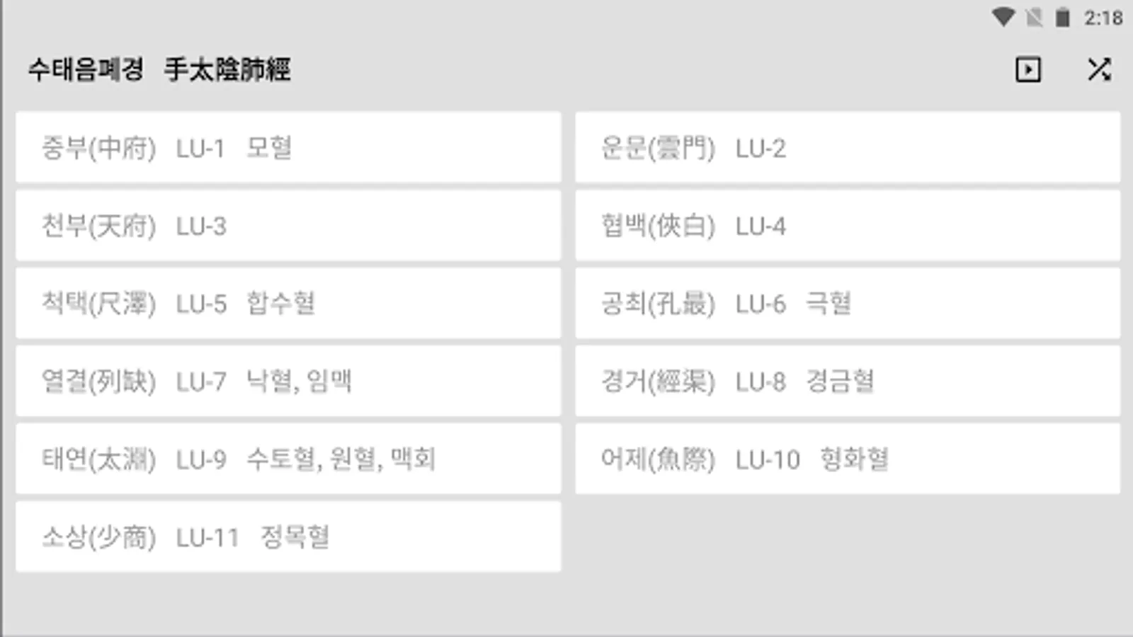 * In this application, only 'conception menopause' and 'foot sun bladder' are available. In order to use the entire meridian, please install the 'Easy memorization of blood points +' application.