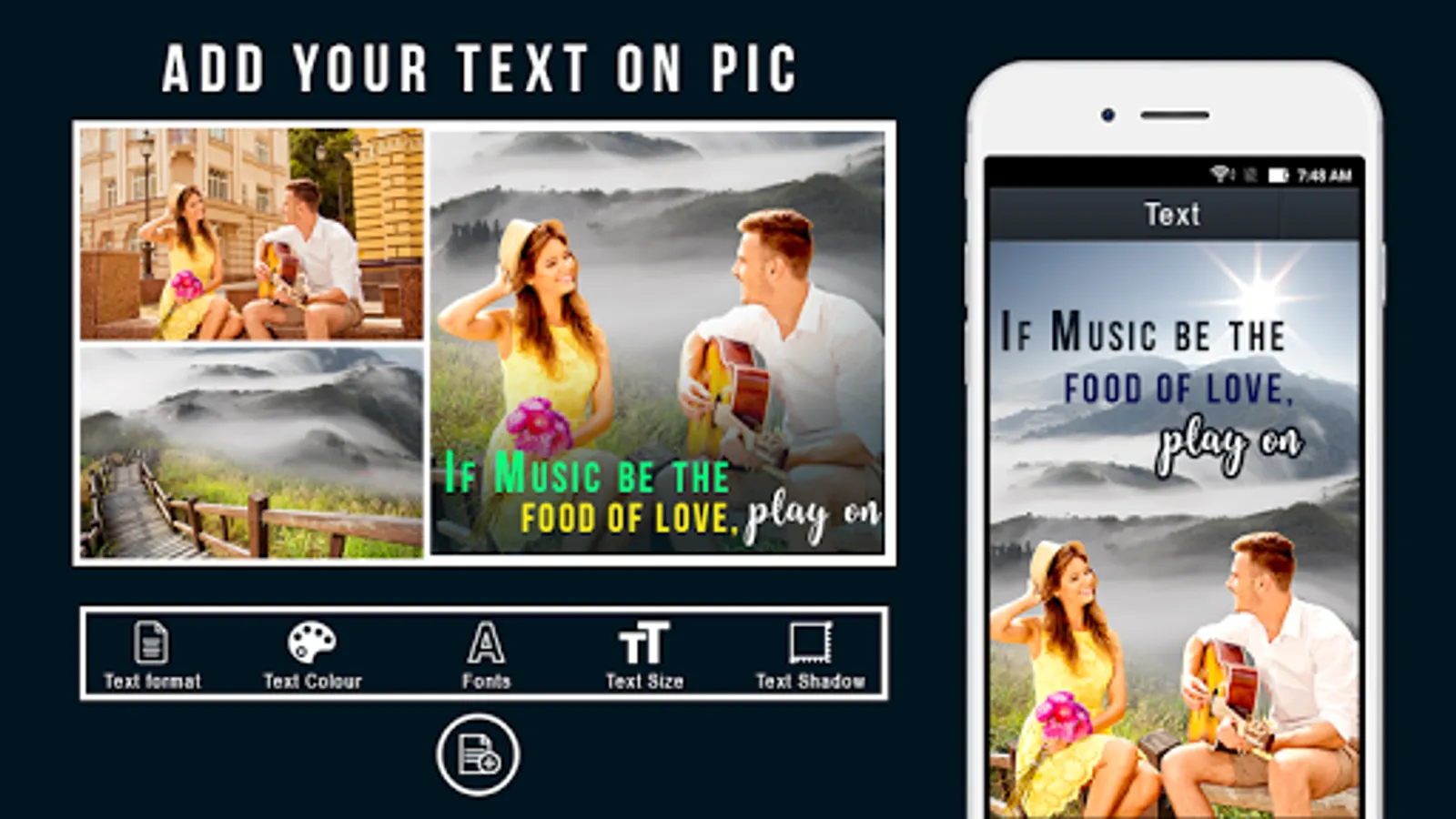 -> Add Text with so many text edit options like text color , font , alignment , text size , shadow .