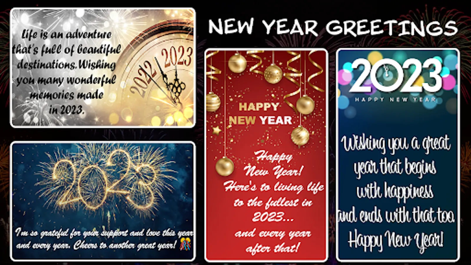 This Happy New Year Photo Card app which contains awesome New Year Wishes 2023 and Greetings & GIFS. Make this new year 2023 more special by wishing your friends and beloved ones with your unique new year photos greetings contains nicely designed happy new year parties, new year 2022 quotes and new year photos greetings.
