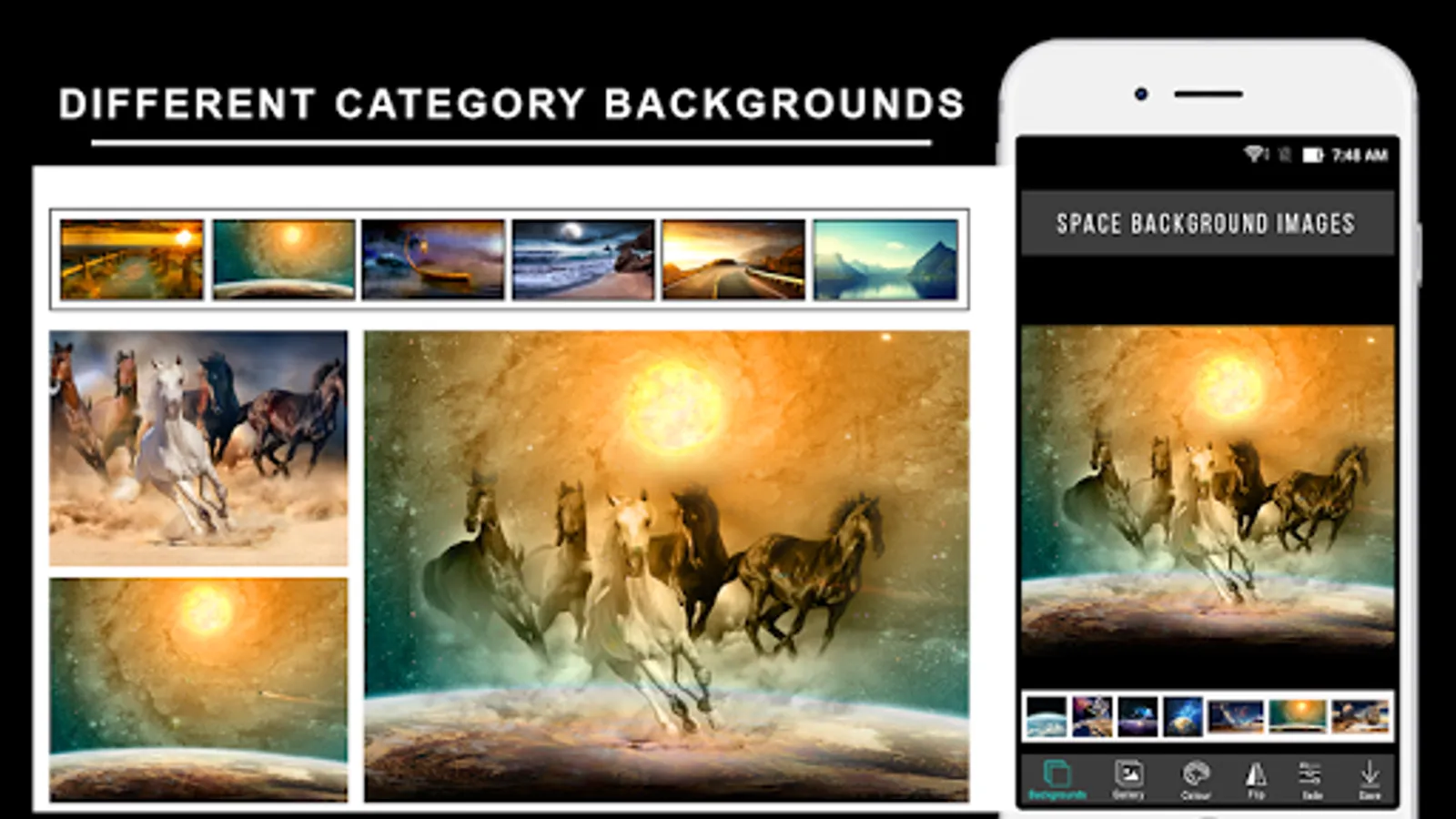 Background image categories: This automatic background changer app which have categories like animal, flower, road, sun set, sea beach, space, templates and waterfall an even you can download of lot of images from internet and easily cut off, apply bg change to your photos using the best ultimate background eraser app.