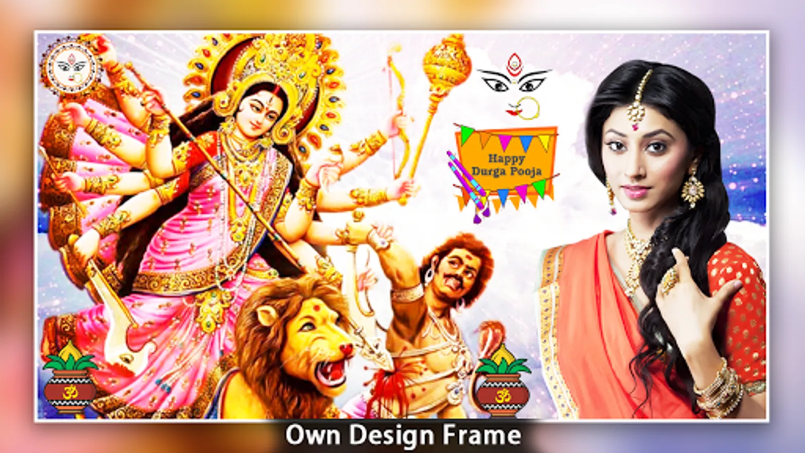 *Apply the different types of color face effects, image flip and stickers into durga mata ka photo frames.