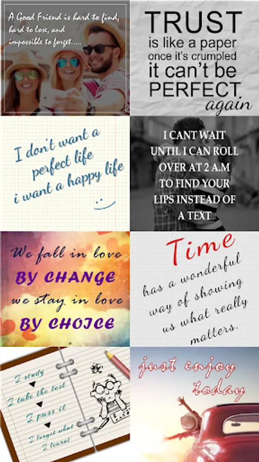 * 14+ Happy Mood Quotes allows add joyful captions to images.
