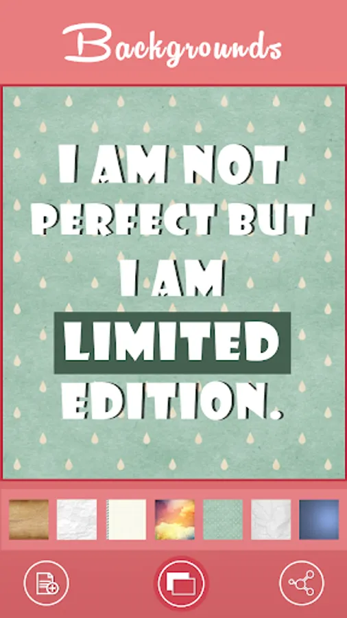 Text on photo contains beautiful backgrounds as well. You can select background which u like most and on top of it add your text. It has some sample designs as well. You can check those to get idea how to design your own photo.