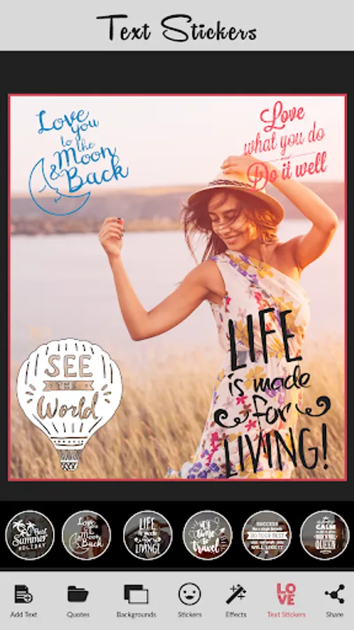6. Use Text stickers to make the attractive quotes creator with images application.