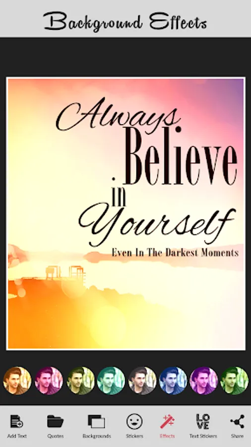 *20+ Color effects with blur and overlay options for this picture quotes and sayings maker app.