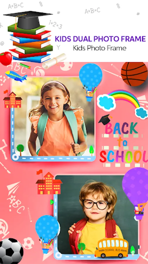 Kids' are special so capture them and wrap them up with this kids dual photo frames for free. Kids Frame Photo for Pictures will empower by applying filters, text and cute stickers. Select a photo and start editing it and be a part of the dual photo poses for kids.