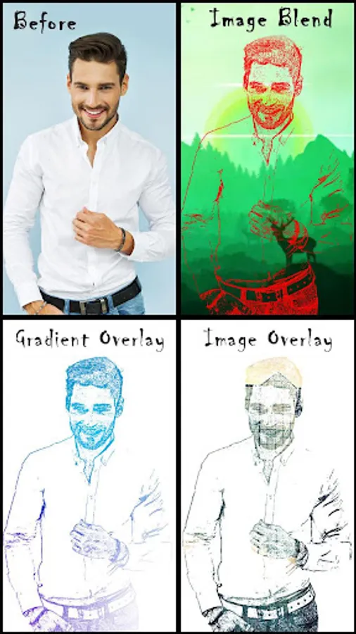 Transform any images into an impressive picture outline sketch (or) instasquare photo maker that looks it was drawn by hand. Pick the image from your gallery or use the build-in camera feature to take a new picture and use it to apply the gradients, overlays and color filters.