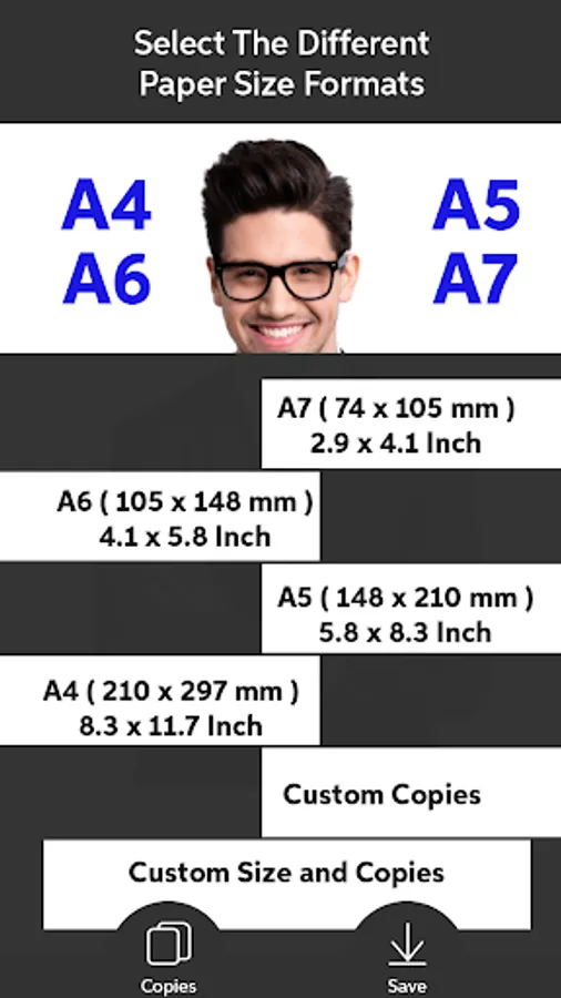 Passport photo maker studio (or) id photo maker free support multiple paper size to take print out.It can be used to get multiple number of copies like 1, 2, 4, 8, 20.