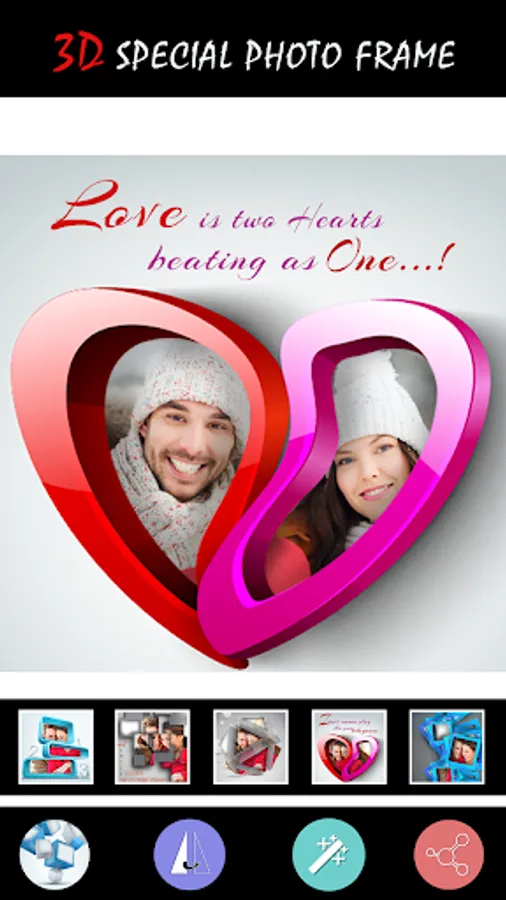 3D Photo Editor are a great way to display photos of happy memories. This 3D Photo Camera photo editor app offers you square frames, polygon frames, circle frames, heart frames, star frames and more photo frames of different sizes and shapes inspired with 3D.The warmth of 3D time spent with friends and loved ones is so enjoyable that the memories being created by surreal photography and captured with photos will inspire you throughout the following year.