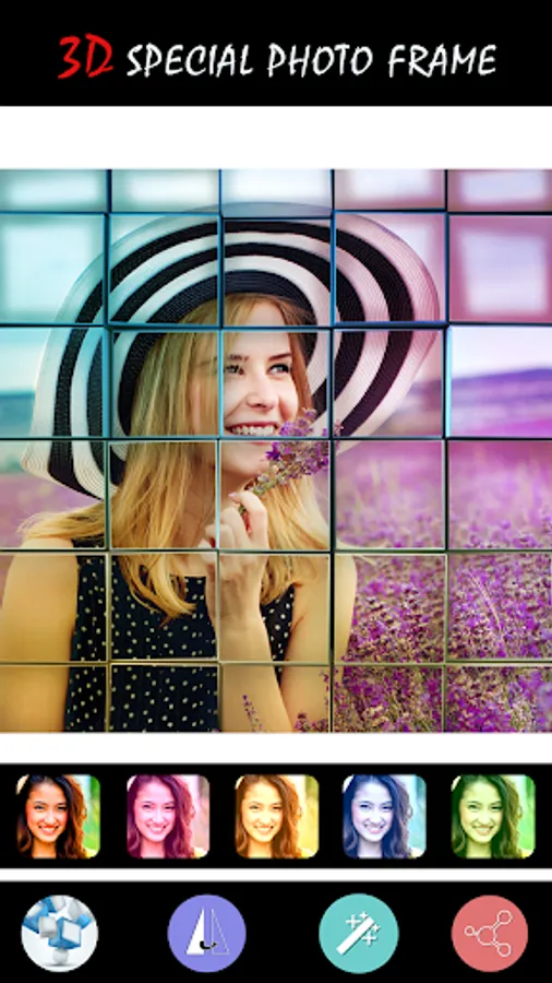 Get the best surreal photography art in your photos with large number of amazing 3d photo effects.You can create good colour effect photos with this photo editor app which will let you create beautiful photos. This 3d picture effects app comes with beautiful 3D special effect photo frames as well.