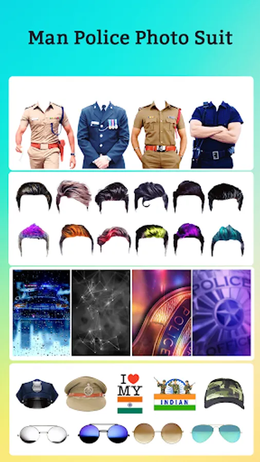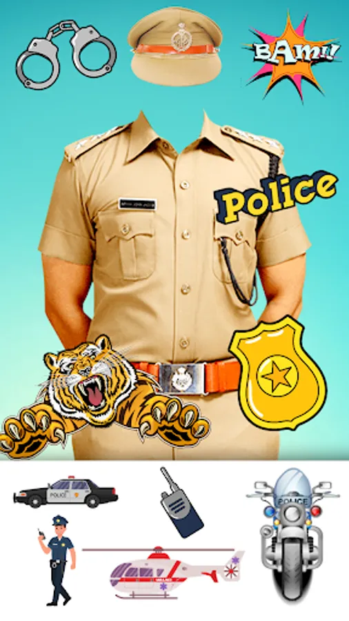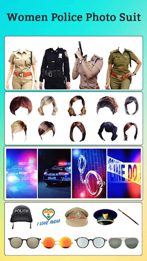 Try this women police suit photo editor app which has the police stickers like hair styles & sunglasses, flags, powerful weapons, cars, bikes, choppers, cartoon stickers through this background remover app along with text and color fonts.