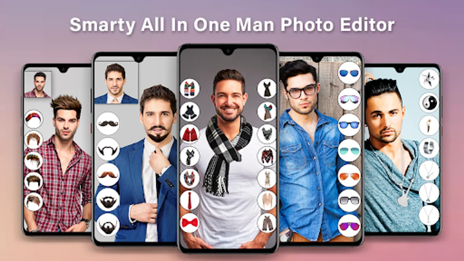 Try Smarty for men mustache, hair makeup and men hairstyle, mustard photo editor, beard photo editor studio for getups photos makes the best man photo editor for men grooming getups , bangs hair app, short haircuts for men, curly hair app men hair do and thadi styles for men.