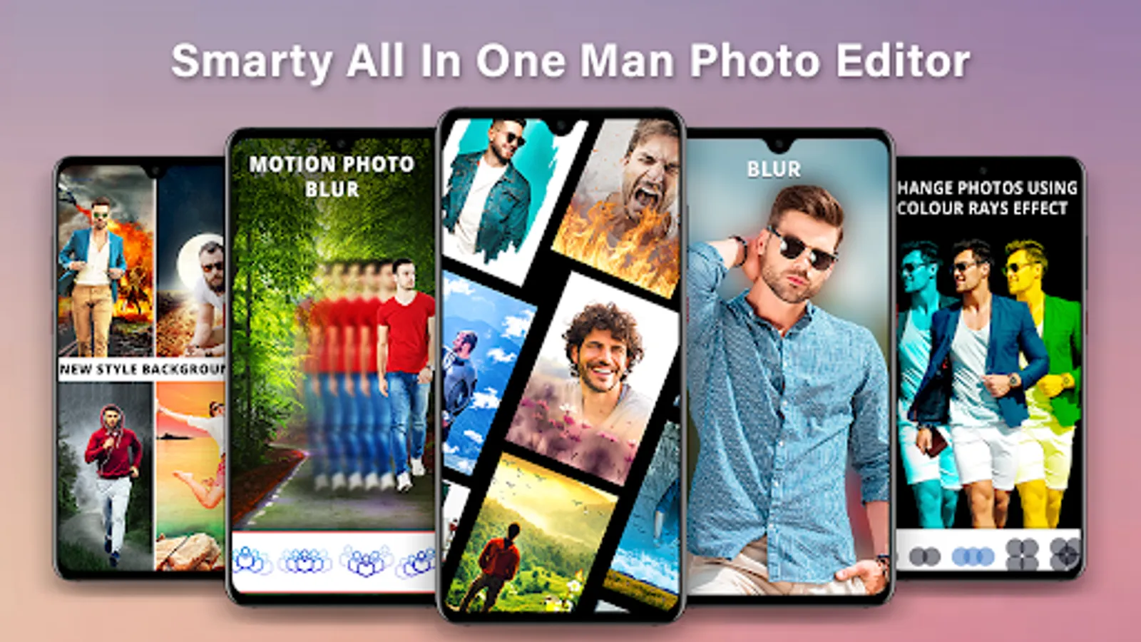 Adjust photos using saturation, contrast, brightness that make more beautiful pictures using man photo editor app and also apply special effects, face filters and color effects to photos. Blur your image and edit your photo background by applying our customized blur. Change normal background to blur image background. Giving an amazing blurry look to your photo makes it more beautiful using the best blur photo editor to change your picture backgrounds.