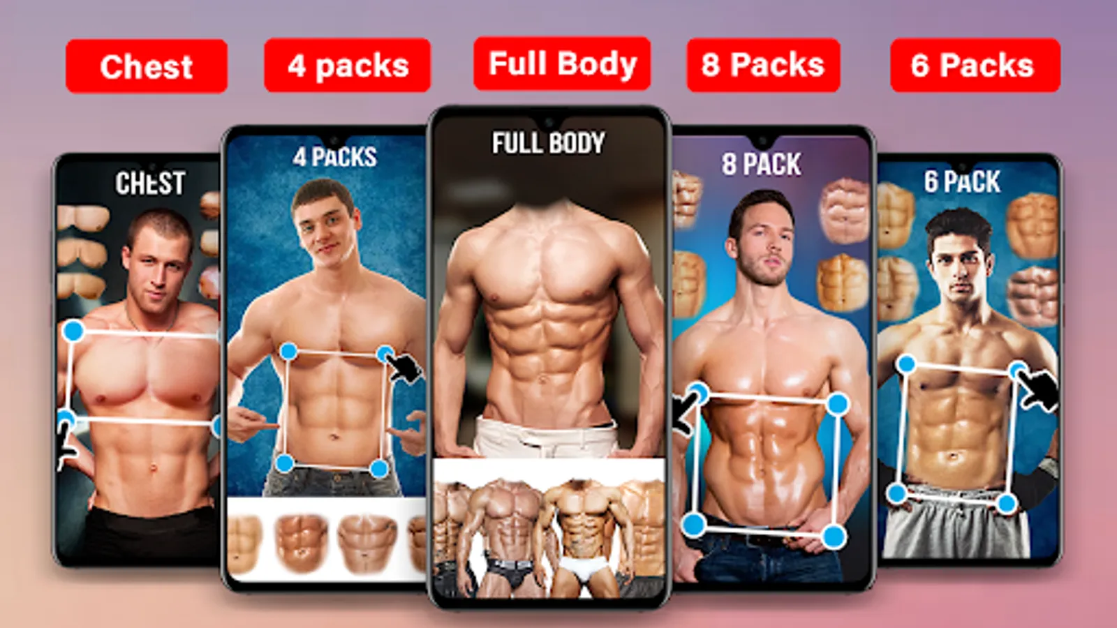 Get six packs eight packs easily using our bodybuilders photo editor for stylish abs styles for man boys & pecs editor sixpack photo editor app and latest boys hair styles.
