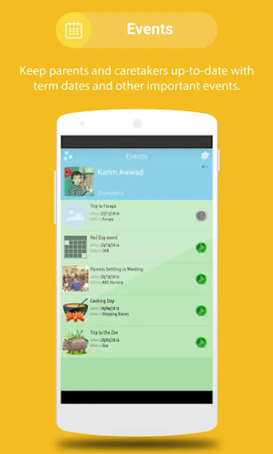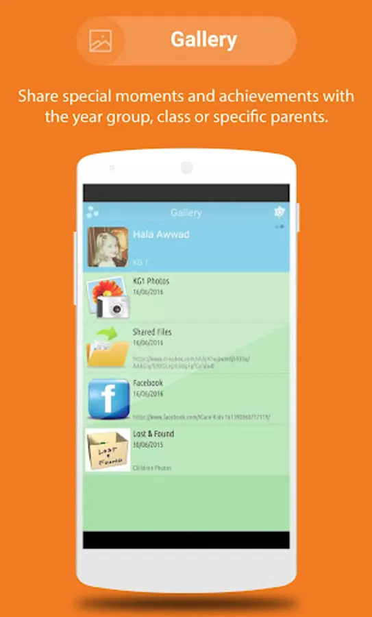 - View child's photos as soon as they are taken whether in class or events and be able to share or save them.