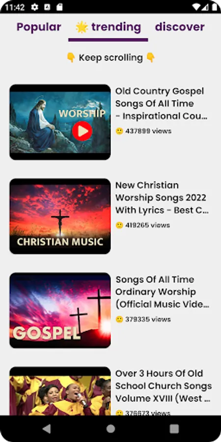 Download now gospel music to play hundreds of video clips about the Holy Bible to praise and worship. From New York Gospel songs to other Christian music, this is the best playlist and private collection if you love Jesus! Use our app if you want to listen to the best Catholic music, including Hillsong worship hits. Discover free gospel music videos in the most popular languages like Spanish, English, or Portuguese. You will also find Nigerian praise and worship videos, and learn how to be a good Christian. Do you like the bible and do you consider Evangelical believers? Or do you prefer to sing worship songs? Don't miss the gospel songs with lyrics to have a Christian karaoke party at home.