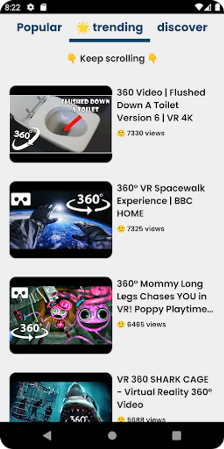 You won't need a controller to play our videos 360. Some might say that these collection of videos are better than jumping of a plane, or feeling like live skydiving vr 360 experience without danger. Hundreds of different experiences, from vr dinosaurs documentaries to scary movies. Don't miss the vr zoo and stay surrounded by sharks as you would dive on the sea. It's better than an animal documentary, with this vr app, you can make impossible things happen. You only need a headset and VR glasses - also suitable for cardboard.