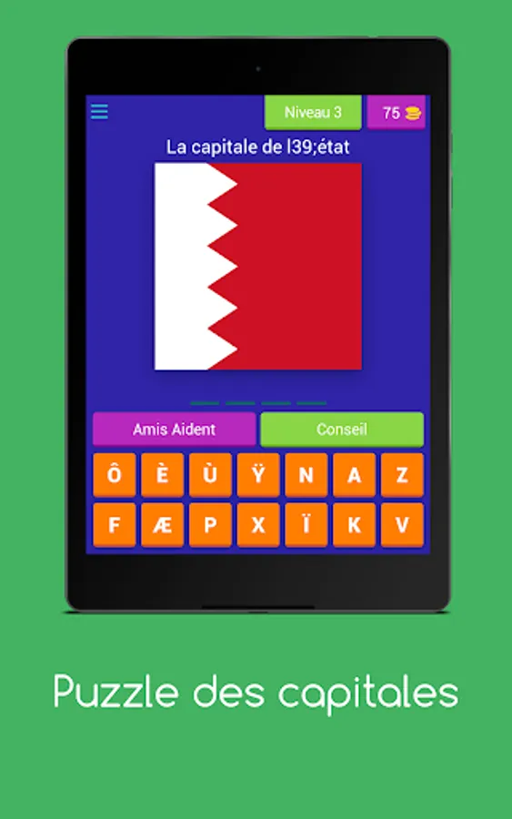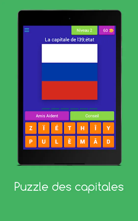 The application of the games of rompecabezas of the capitals of the countries is a game that focuses on conocer the capitals of the world and saber de que pays se muestra la bandera.