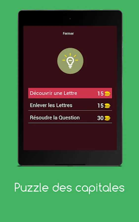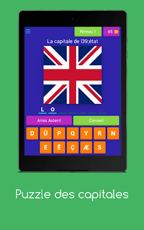 Capitals puzzles is a very entertaining and useful game to help the middle countries to learn the capitals of the world knowing different countries and banderas of countries. Ayudarle a concentrarse y analizar.