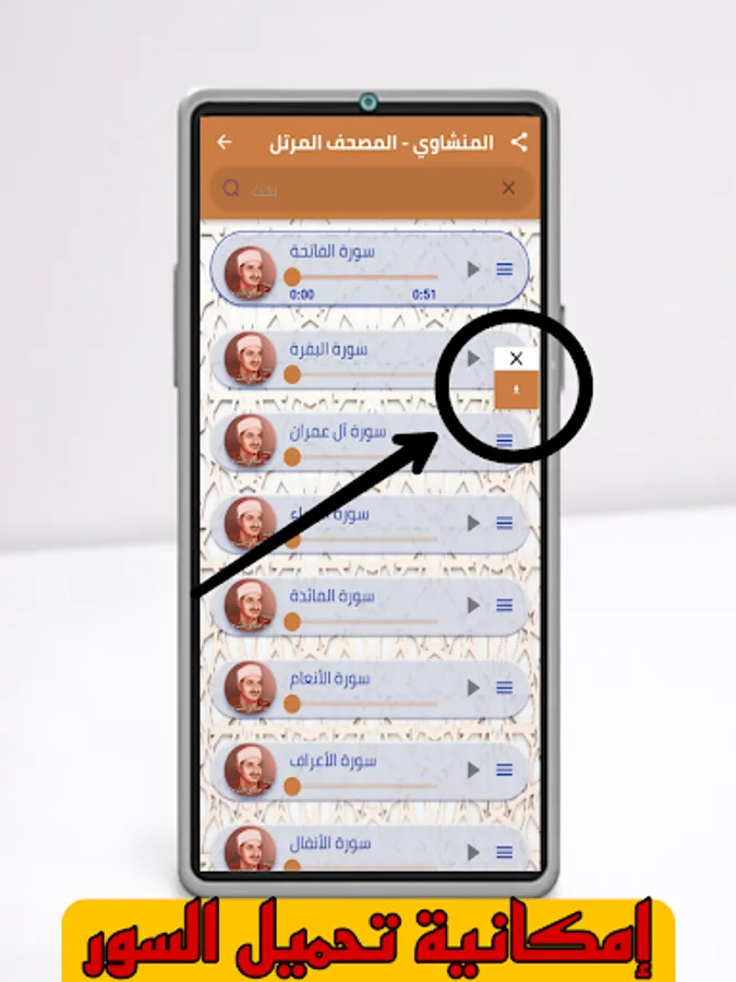 The application of the Noble Qur’an with the voice of Sheikh Muhammad Siddiq Al-Minshawi, you can hear all the Holy Qur’an through your mobile phone with ease through one application that contains all the surahs of the Noble Qur’an.